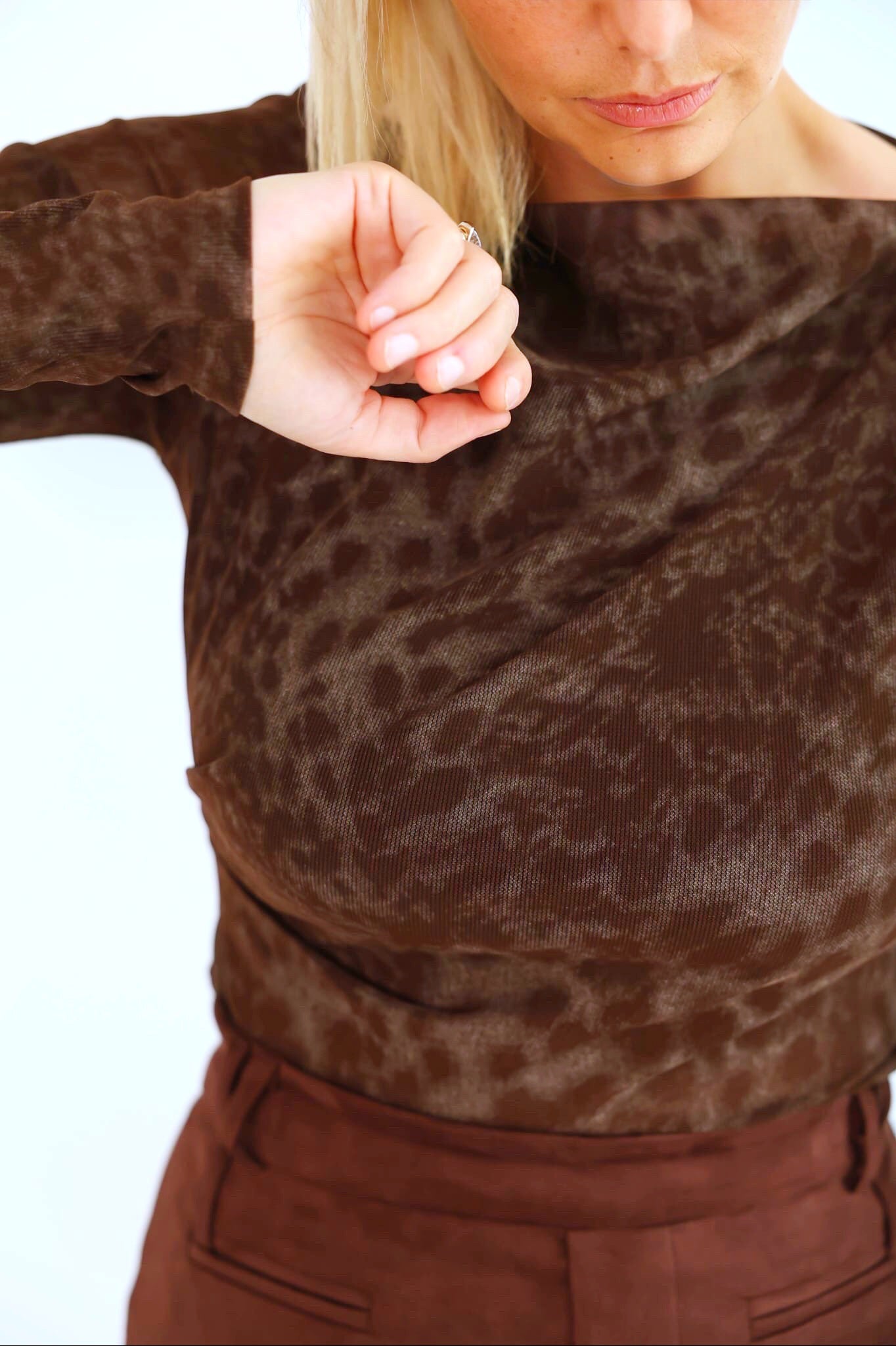 ♥ Model van de bruine Leopoard blouse bestaat in: S,M,L